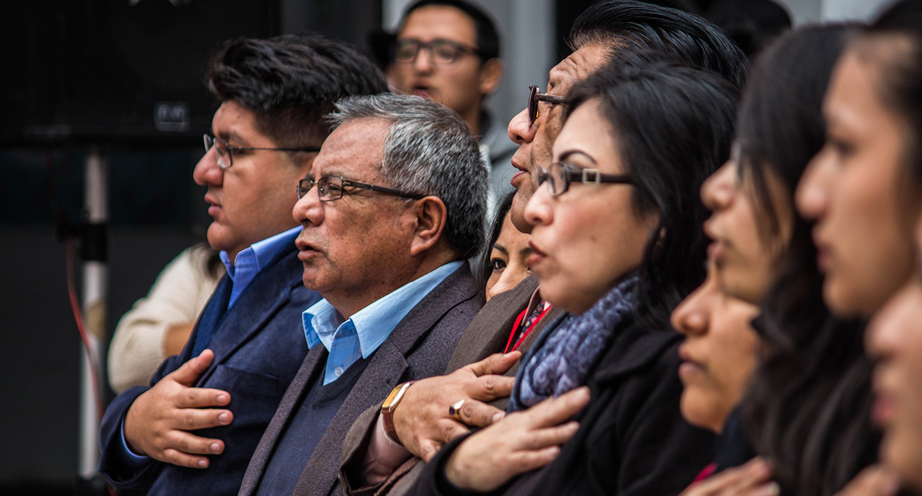 Para la apertura del evento, estudiantes y profesores entonaron el himno nacional de manera emotiva.